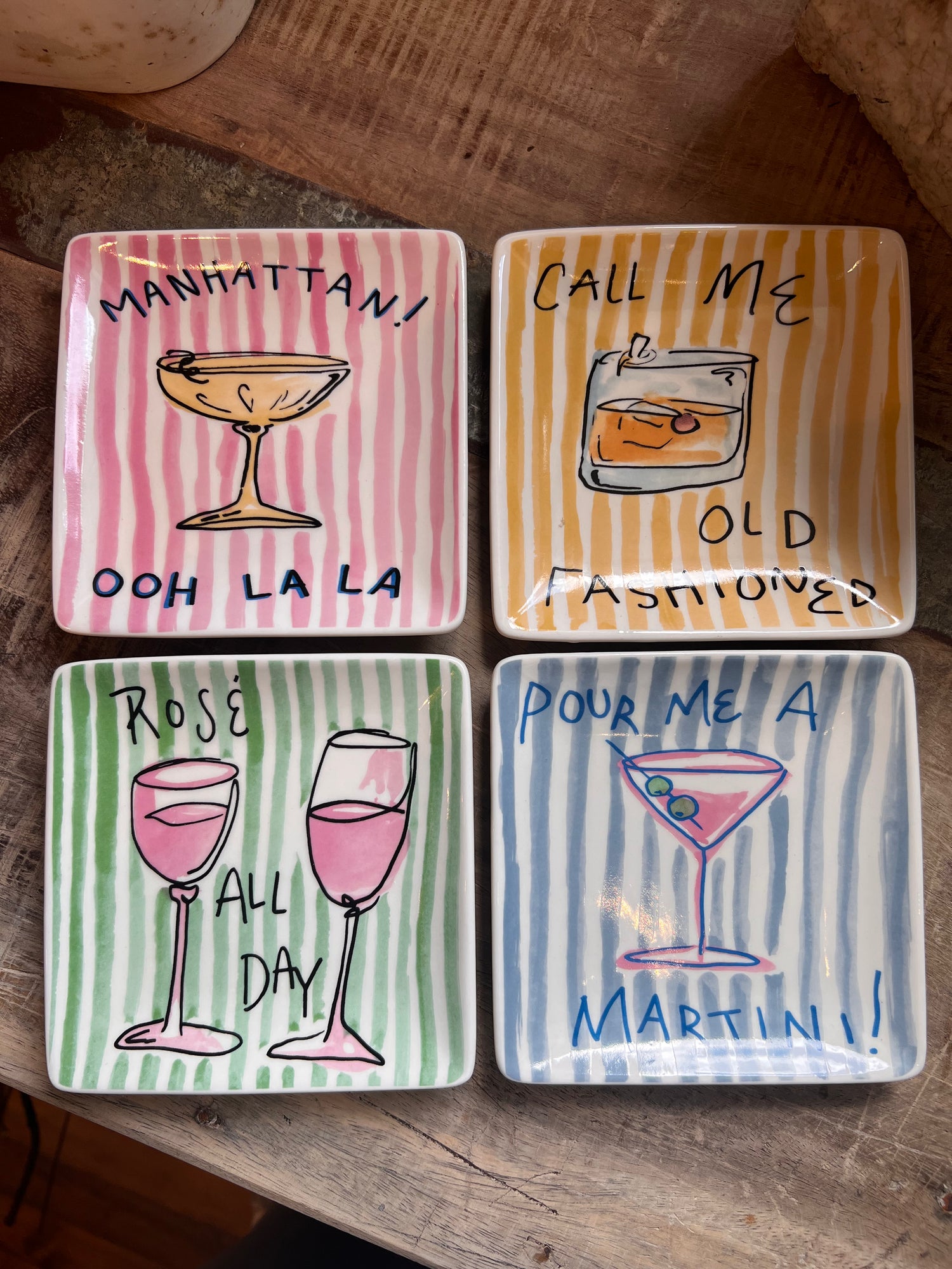 Add these adorable cocktail plates to your bar cart for that touch of character. Stylish and functional, these are microwave and dishwasher safe.