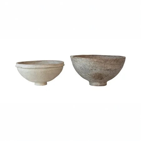 Each one of these paper Mache bowls are different in style due to the paper being found and not reproduced. Each has unique markings and texture and is perfect for your kitchen island. Fill them will our moss balls for a touch of green.