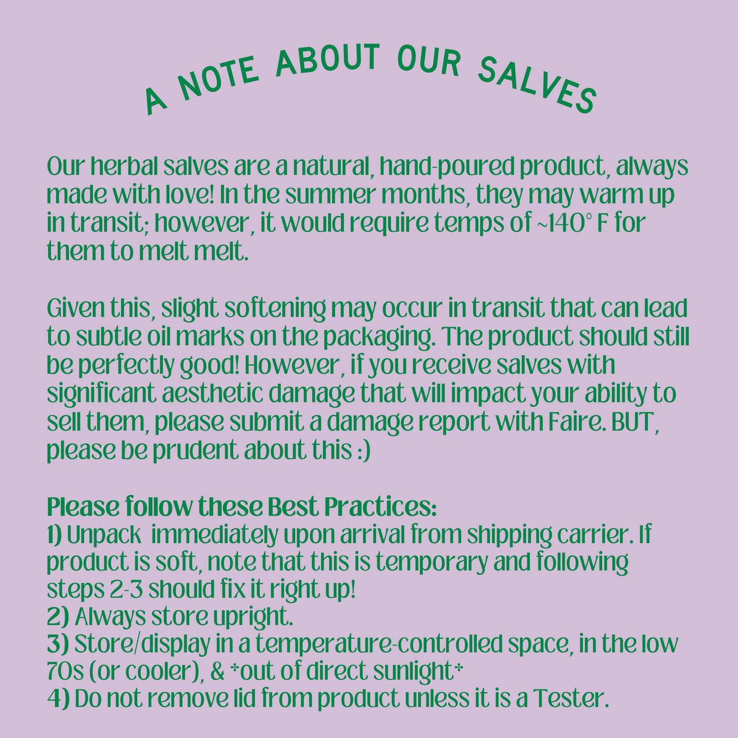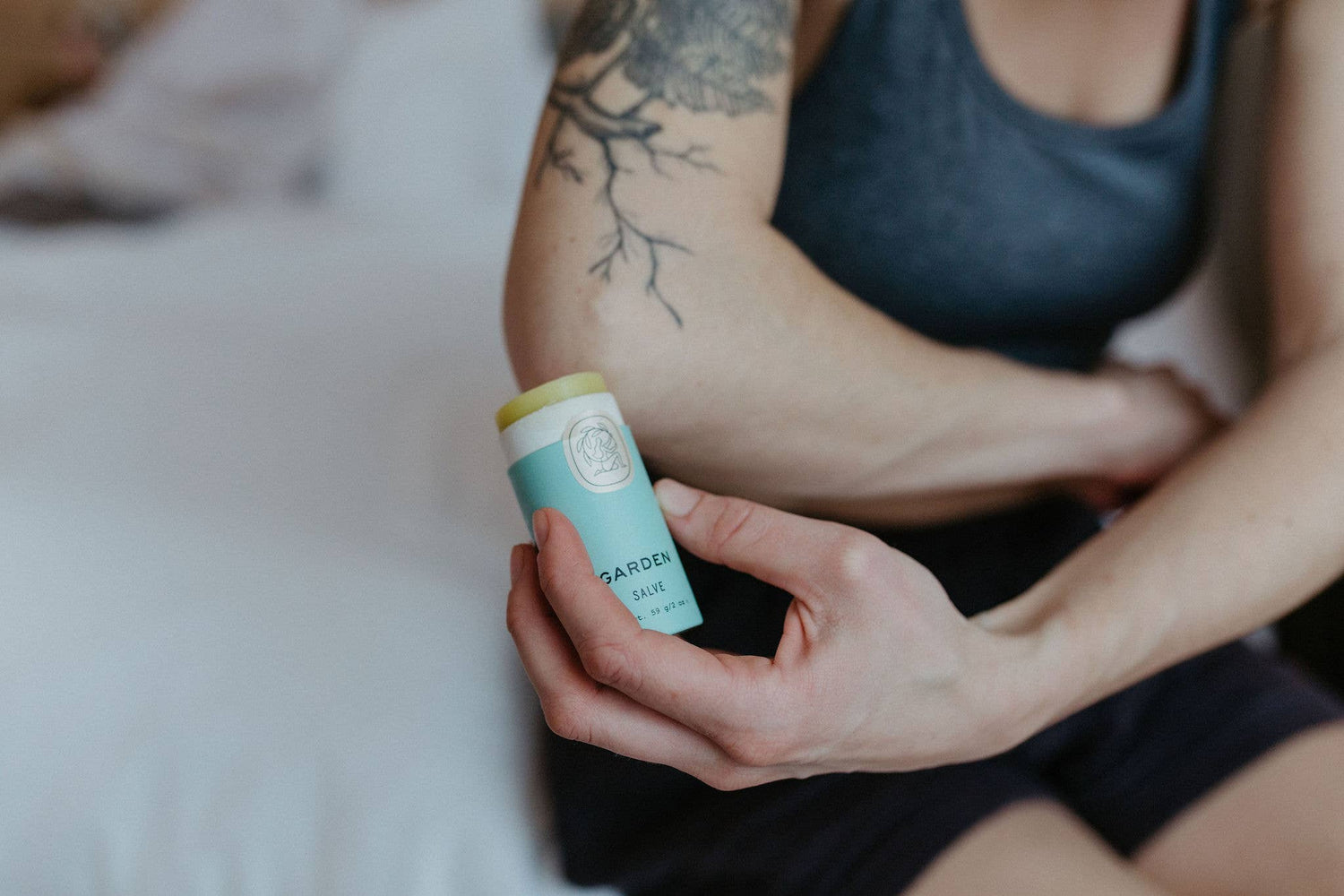 A gardener's best friend, this handcrafted salve nourishes hands that grow beauty. Perfect for a gardener, farmer, or anyone who works with her hands regularly and needs extra care. INGREDIENTS *Extra virgin olive oil infused with **calendula, **comfrey, & **plantain, beeswax, *lavender essential oil, *lemongrass essential oil, vitamin E oil *certified organic // **farm-grown herbsย