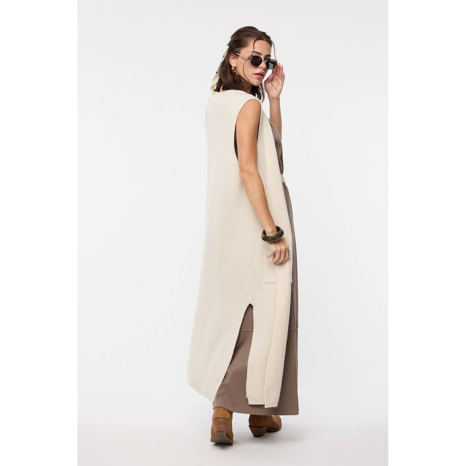 LONG SWEATER VEST CARDIGAN - FRONT POCKETS, SIDE SLITS, EASY, COMFY, FALL, WINTER, CASUAL, EVERYDAY, GOOD FOR LAYERING 98% POLYESTER, 2% SPANDEX