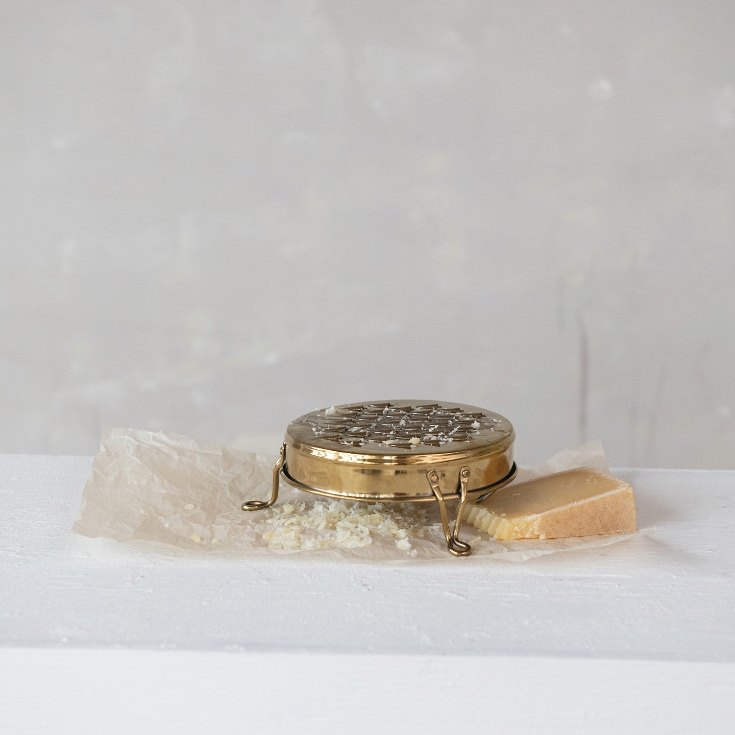 This gold finish grater is a perfect gift for any cheese lover or new home owner. This piece having feet that will make grating fresh cheese easy and pretty!