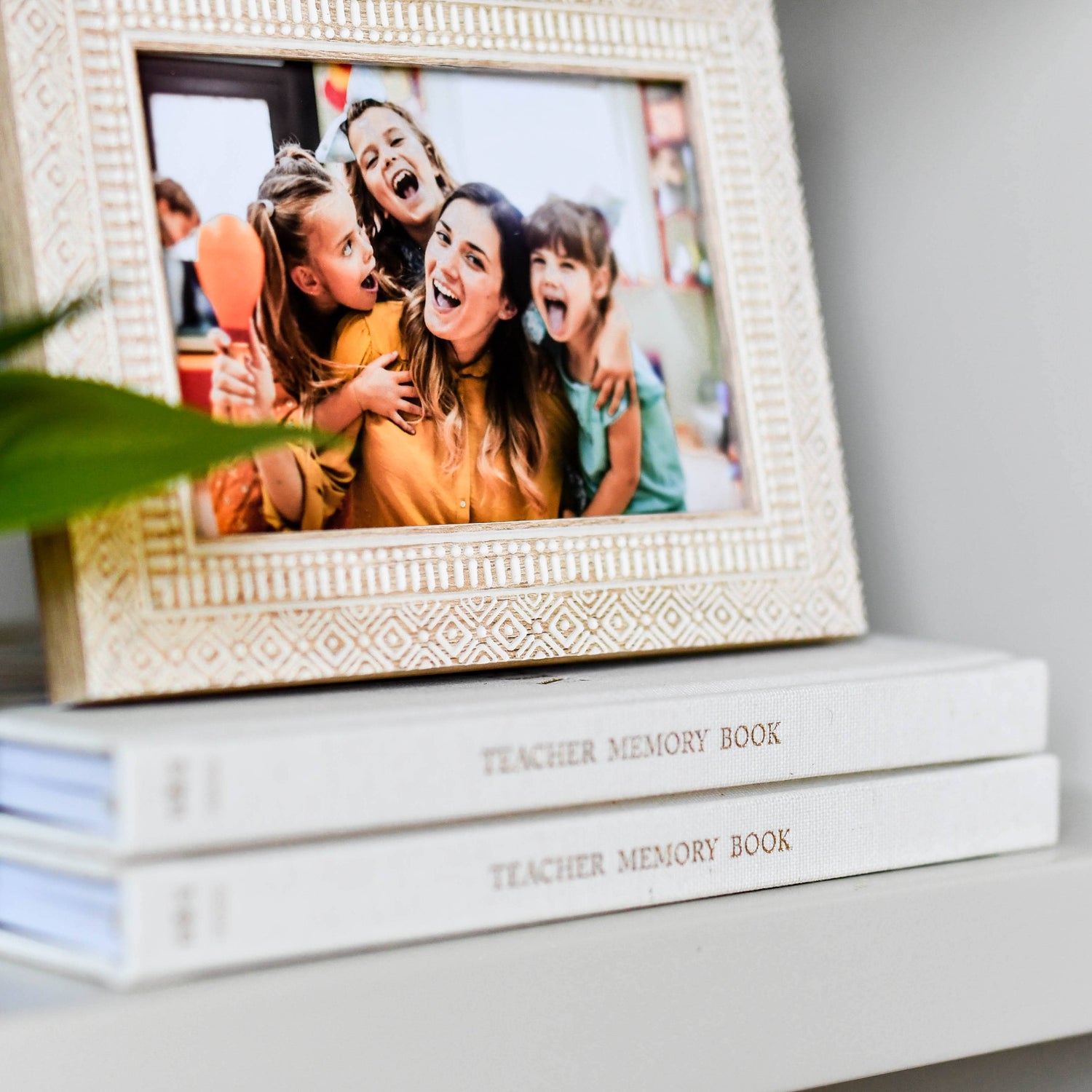 It's time to buy a gift for the amazing teacher in your life and you don't want to get them another #1 teacher mug or floral scented candle they don't need. Quick! What do you do?! We've got you covered with our unique and thoughtful Teacher Memory Book. Capture all your favorite moments each school year with this keepsake journal. With space for prompted questions, student quotes, photos and more, you can save your classroom memories for years to come. YEARLY SECTIONS INCLUDED: - "About the Year" prompted questions - Class photo and roster - Student quotes and stories - End of Year reflection questions - Blank pages for notes and photos PRODUCT DETAILS: - linen bound hard cover with gold embossed title and spine - 9.25 x 7.75 inches - 130 pages